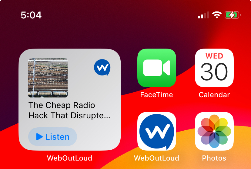 I spent a significant amount of time this week working on a widget for WebOutLoud, which I was hoping could take advantage of the new interactivity. I was pleased to find the new AudioPlaybackIntent which looked promising. I thought this would allow me to create a widget with a play/pause button which could start and stop text to speech. However it doesn't seem to agree with how WebOutLoud does audio. It worked some of the time but not always. This obviously isn't acceptable.